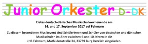 Das Junior-Orchester kann mittlerweile auf zahlreiche Auftritte bei Musikschultagen, der Grünen Note und in Polen zurückblicken. 2017 probte erstmals ein Deutsch-Dänisches Junior-Orkester auf Fehmarn.